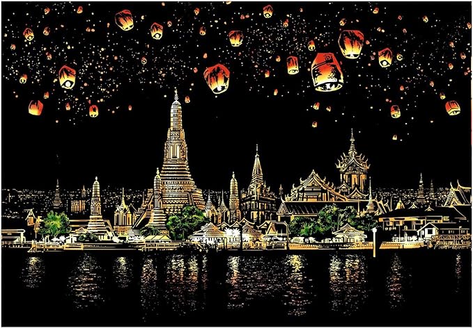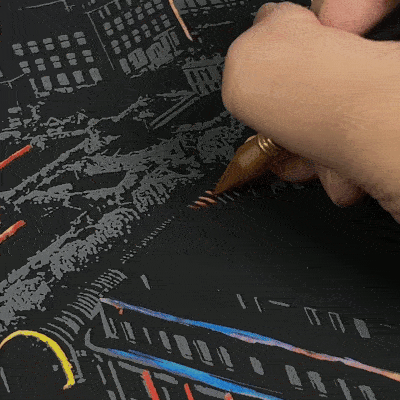 Find serenity as you scratch to uncover your favorite cities. Each kit includes a main scratch board and a supplementary practice board to unleash your creative potential.