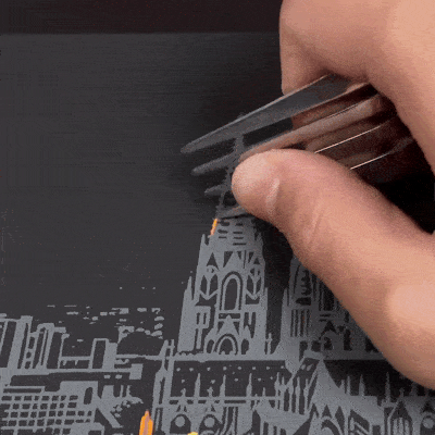 Each scratch board (City Art) measures 41 x 28 cm (16 x 11 inches).
